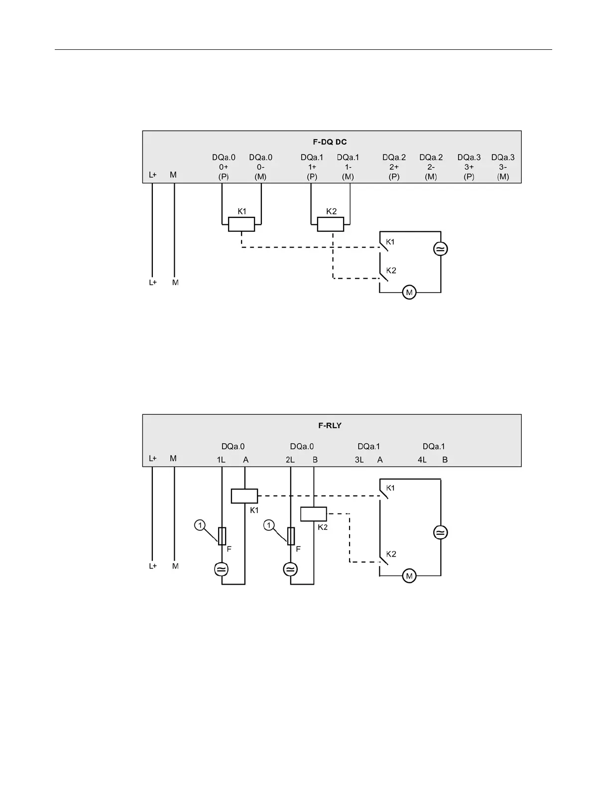Siemens SIMATIC S7-1200 - Application 4: Wiring External Contactors: Separate P and M Output Channels for each Contactor; Application 5: Separate Circuits of a Relay Channel Controlling External Contactors