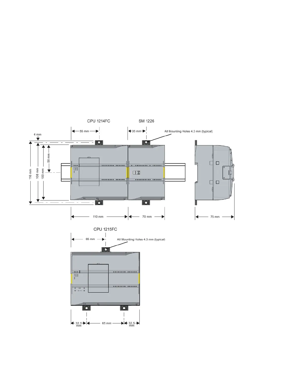 Mounting dimensions for S7-1200 Fail-Safe modules