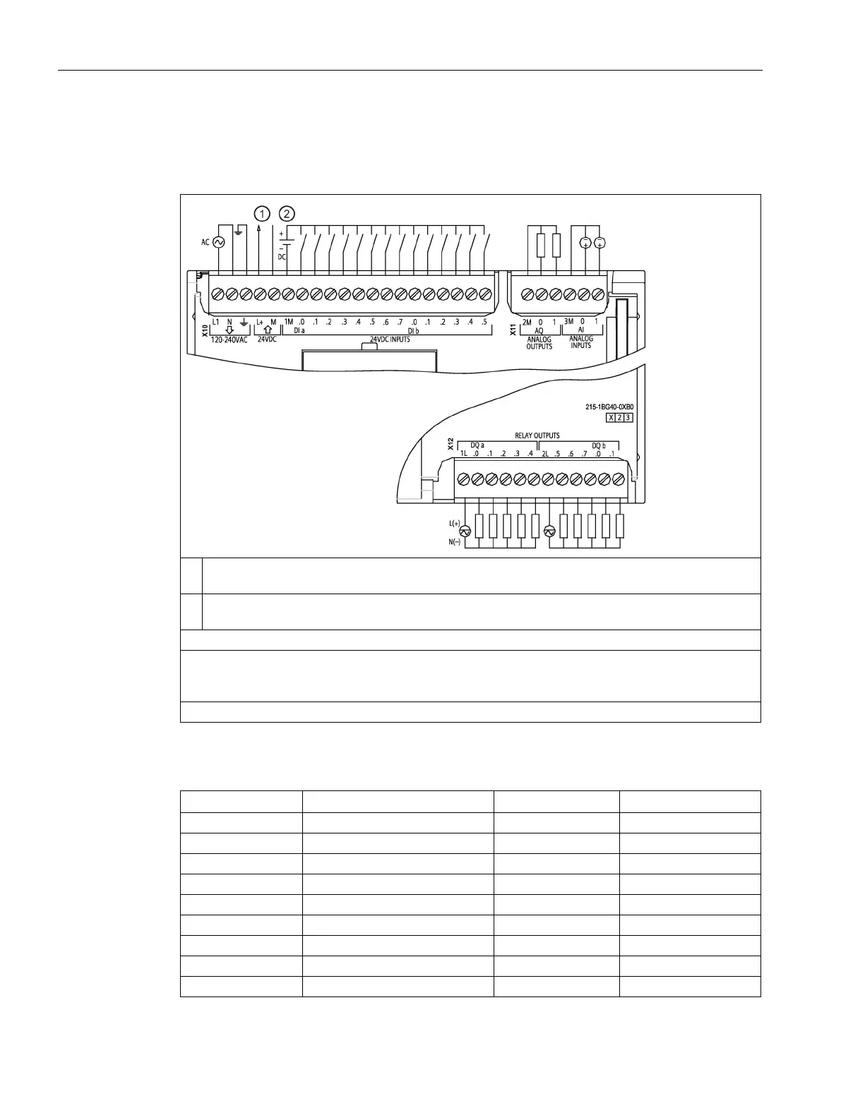 Table A- 82 Connector pin locations for CPU 1215C AC/DC/Relay (6ES7215-1BG40-0XB0)