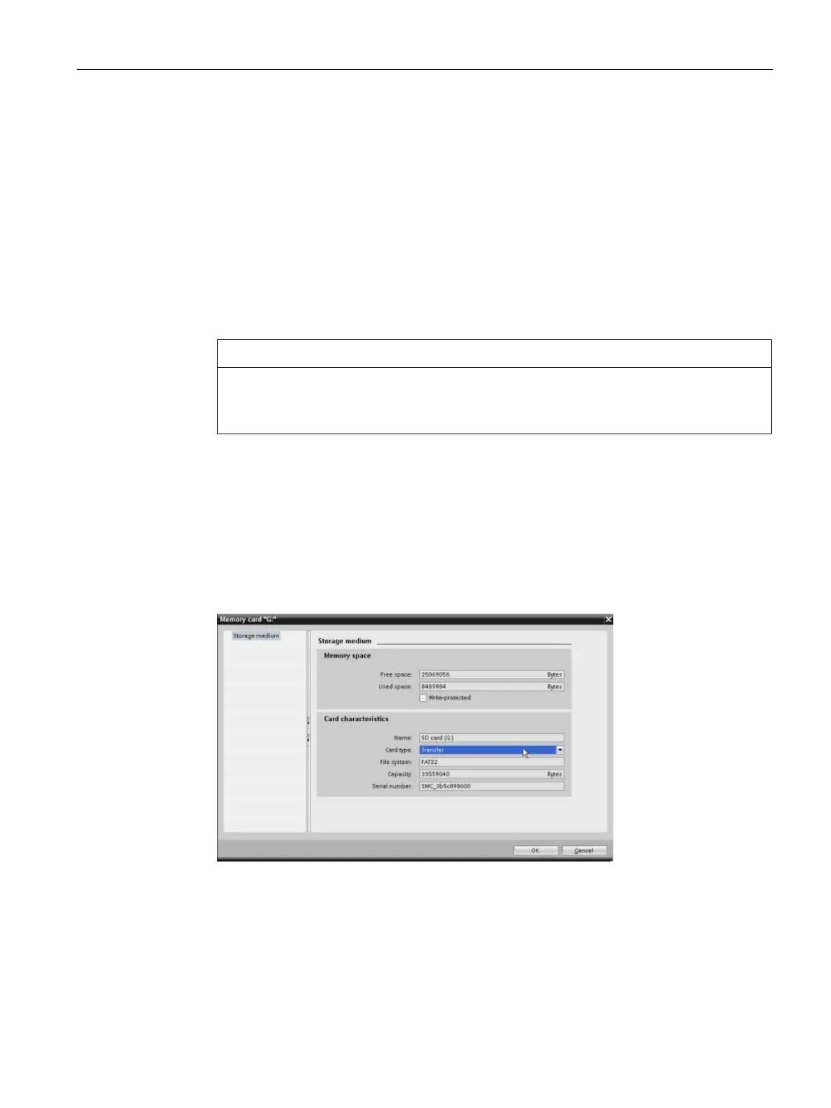 4. In the "Memory card" dialog, select "Transfer" from the "Card type" drop-down menu.