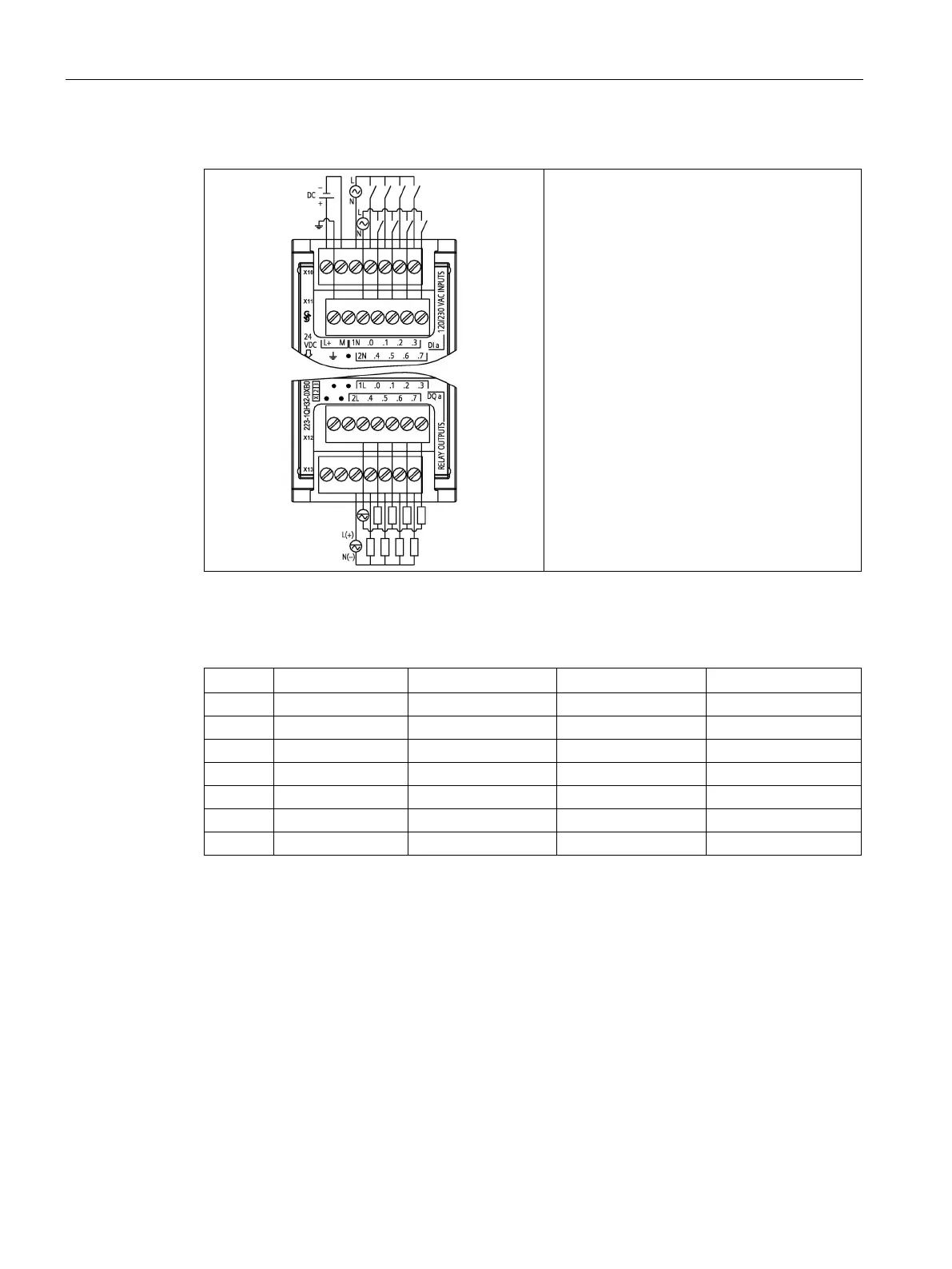 Table A- 136 Connector Pin Locations for SM 1223 DI 8 x 120/240 V AC, DQ 8 x Relay (6ES7223-