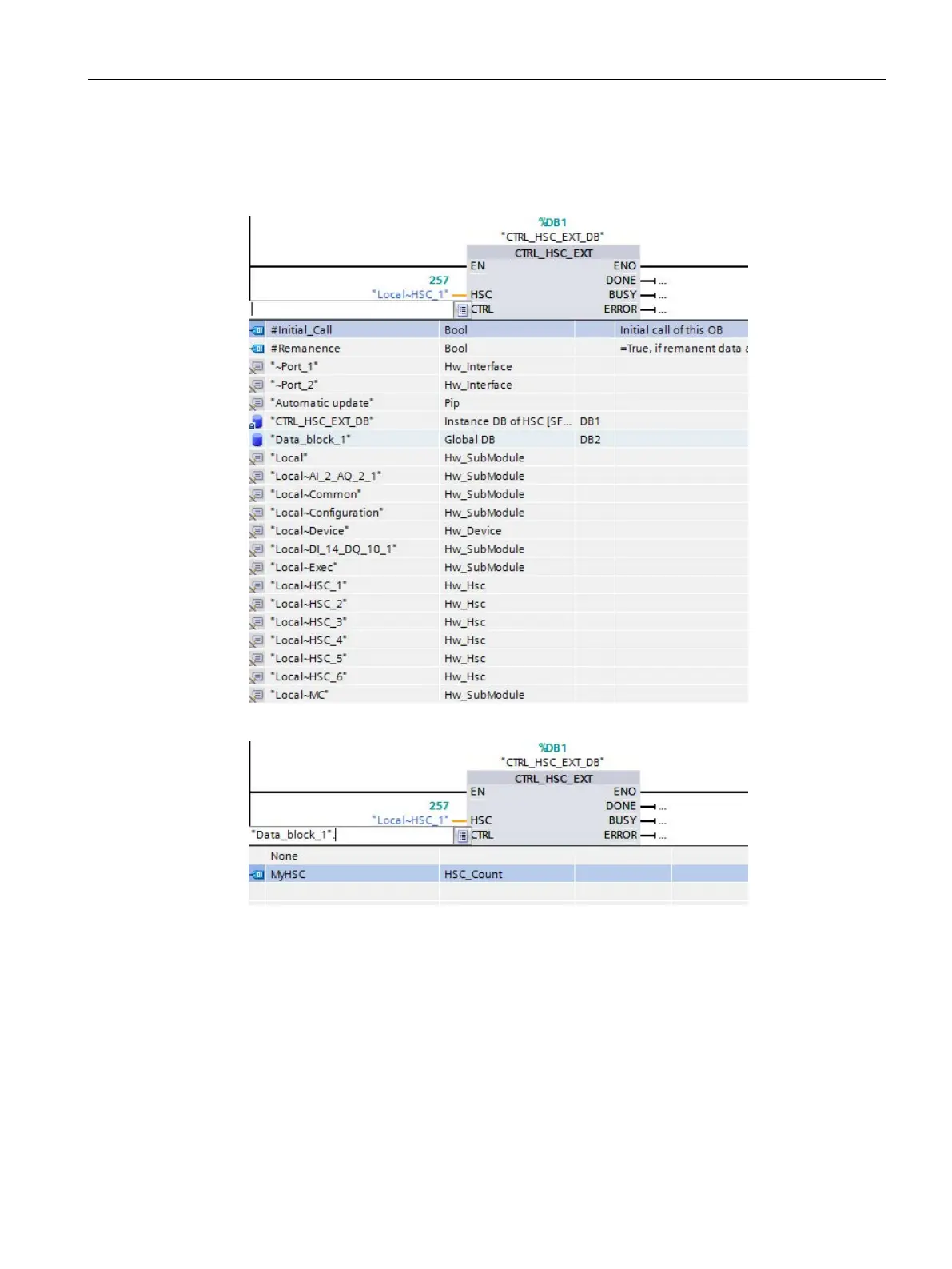 4. Assign the variable "'Data_block_1'. MyHSC" to the CTRL input pin of the