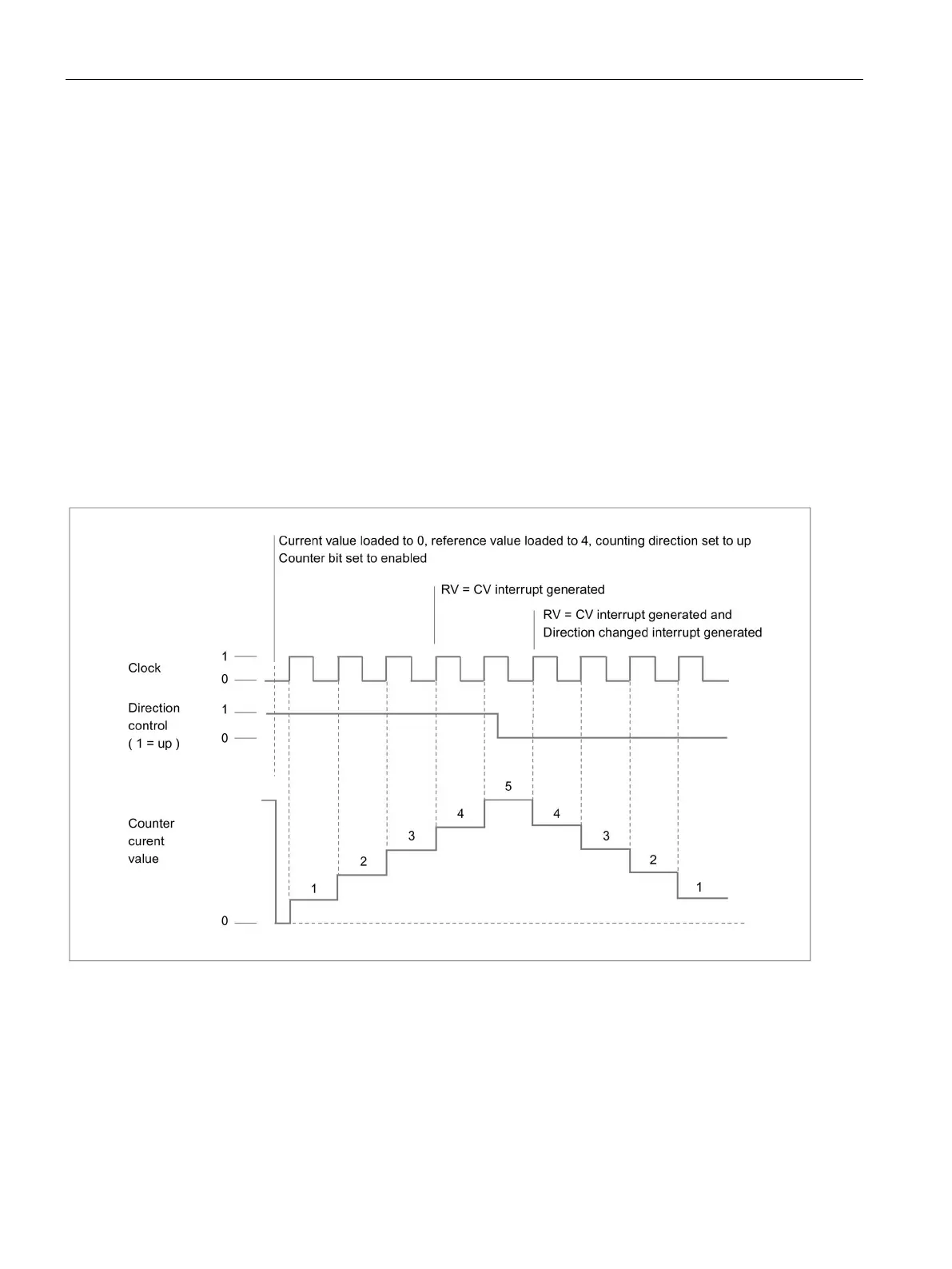 counter value changes, when the current value (CV) equals the reference value (RV) event