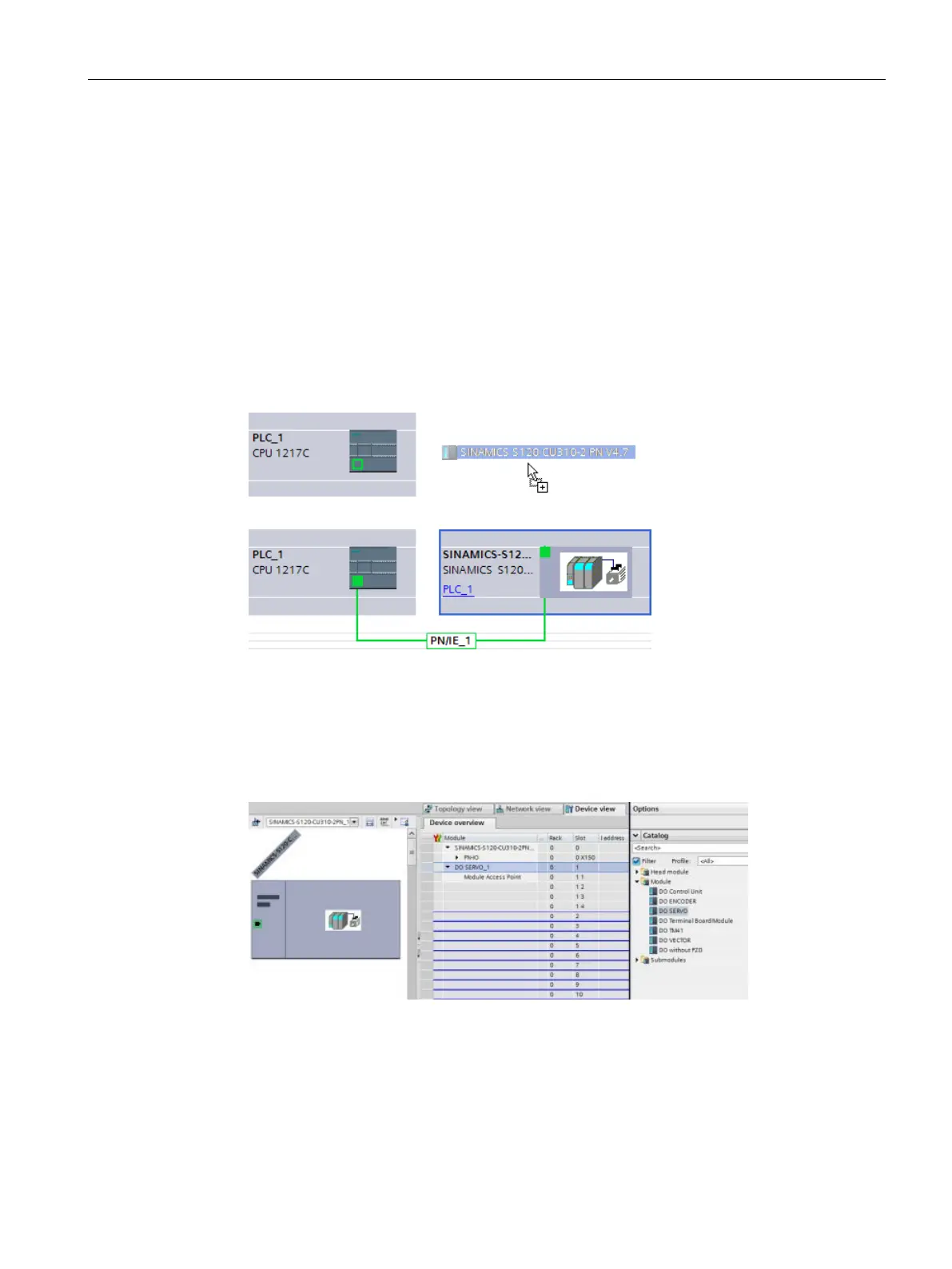 – From the Network view, double-click the SINAMICS S120 CU310-2 PN V4.7 drive.