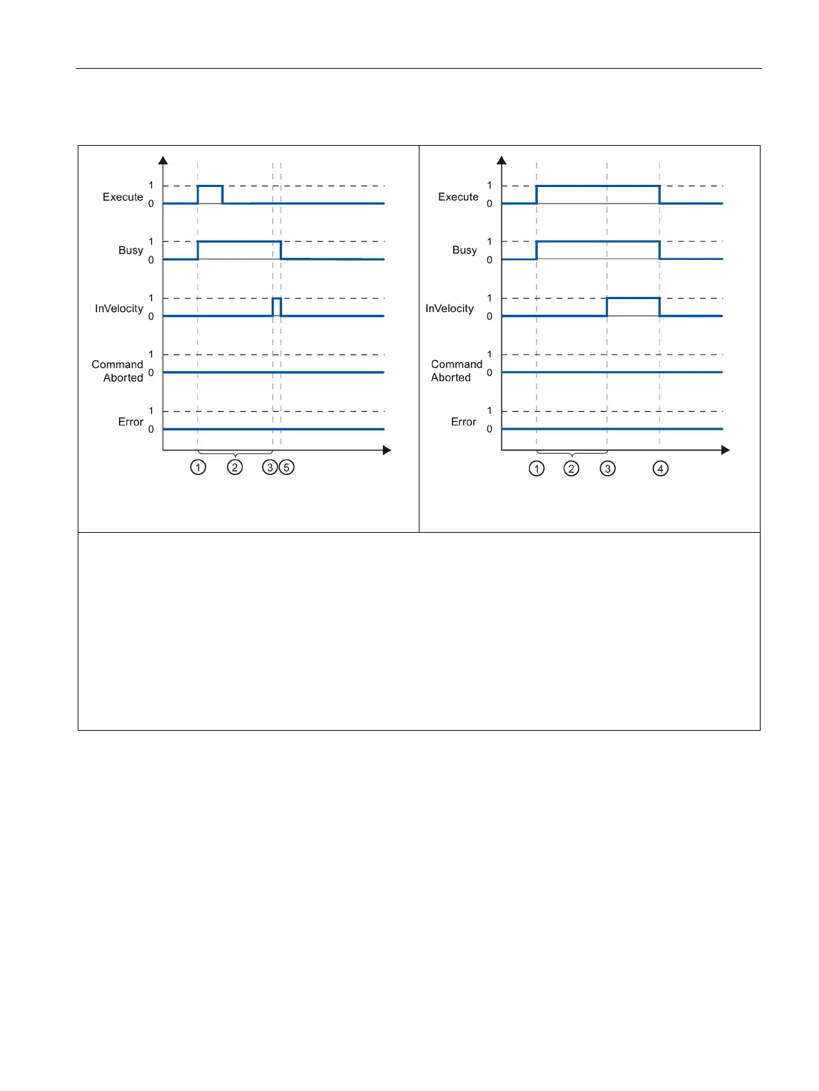 parameterized velocity is reached. "InVelocity" indicates the value TRUE for one execution cycle and changes to FALSE