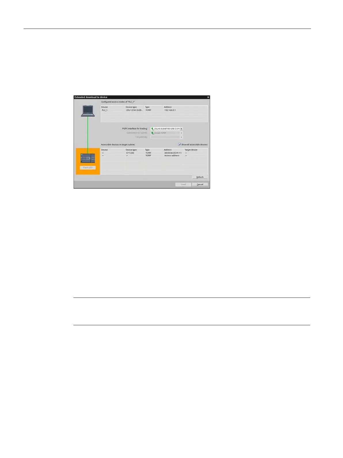 Using the "Extended download to device" dialog to test for connected network devices