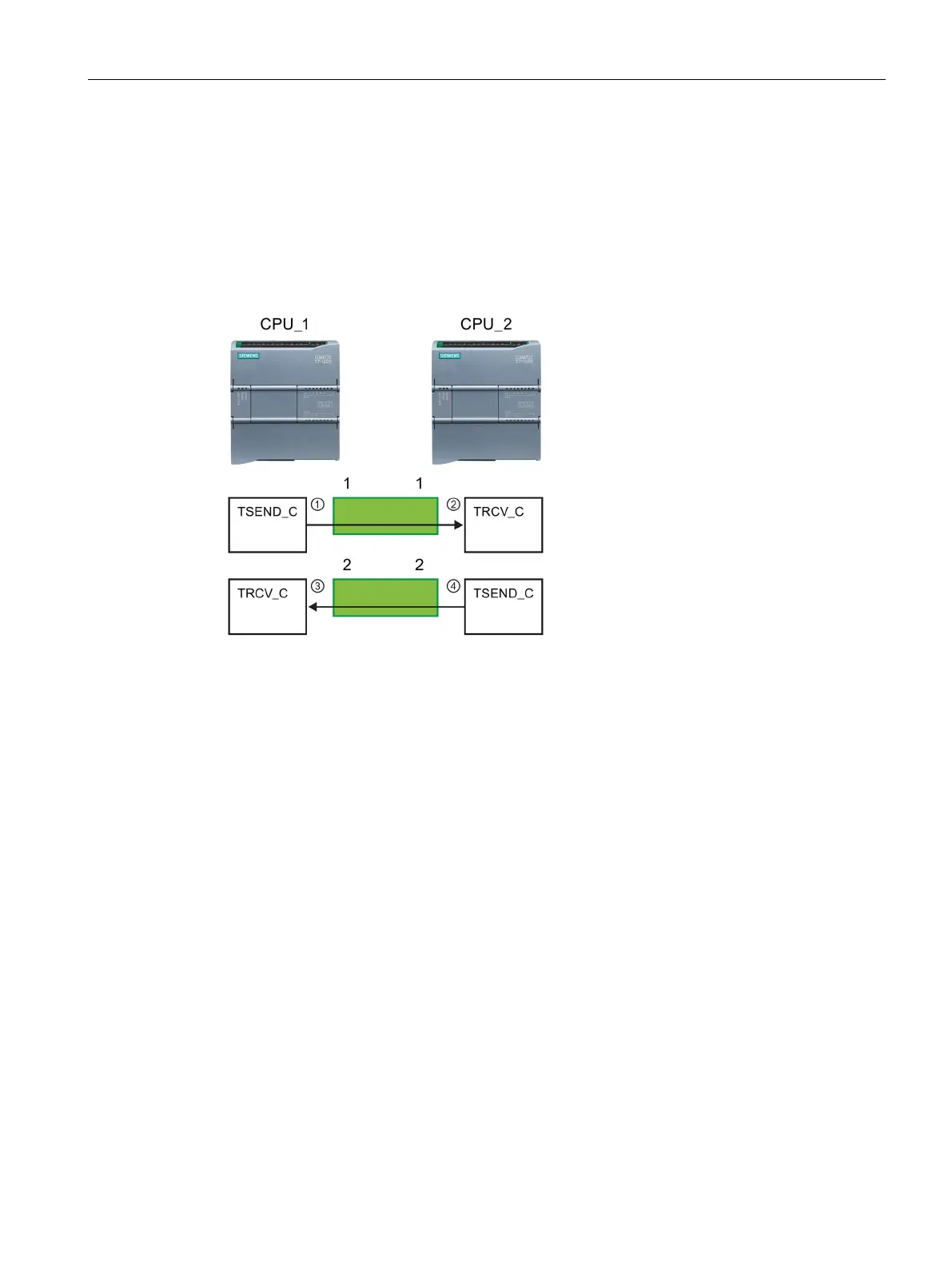 ● The TRCV_C instruction in CPU_1 links to the TSEND_C in CPU_2 over the second
