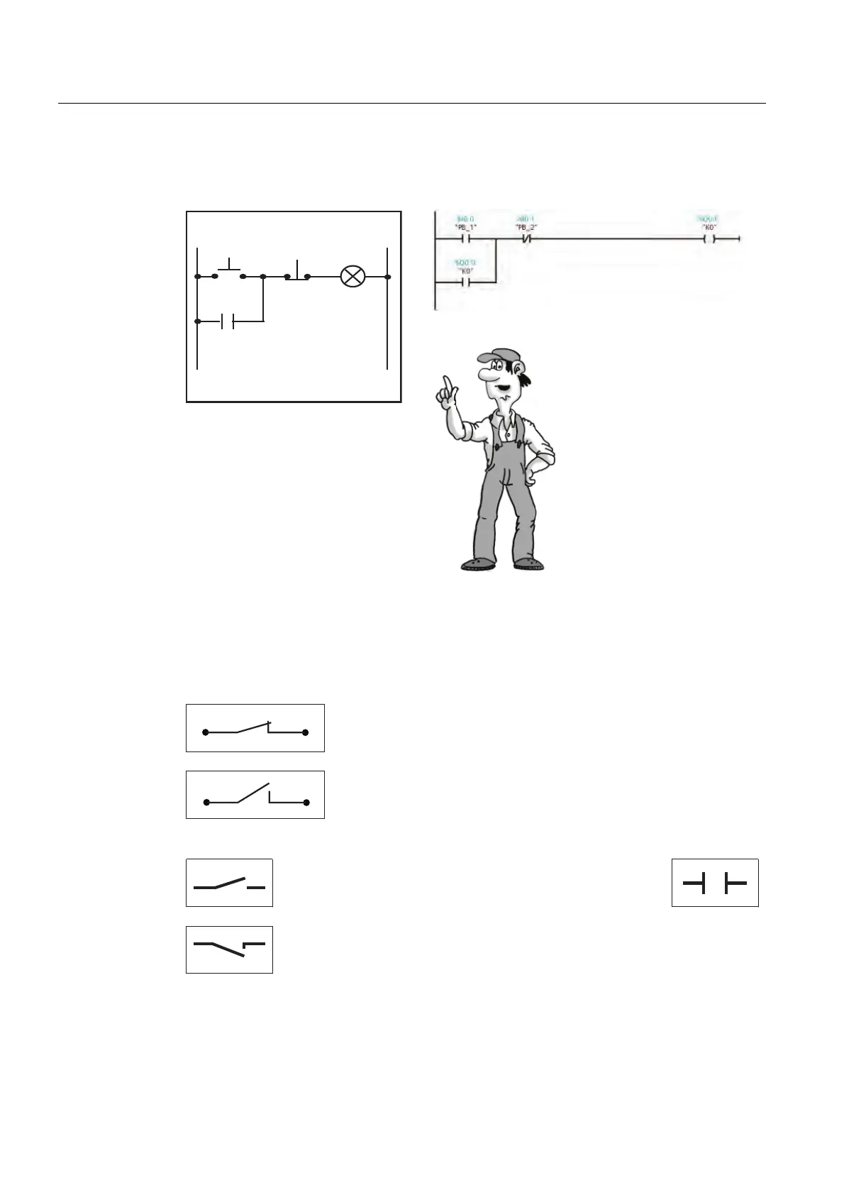 Specific LAD instructions correspond to basic electrical circuits of the schematic diagram.