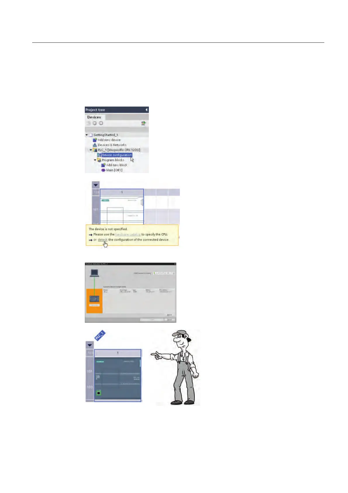 STEP 7 Basic "detects" any CPU connected to the