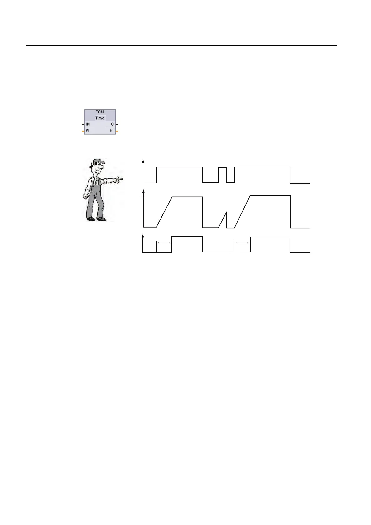 When the timer turns on (IN = 1), the on-delay timer waits a preset amount of timer (PT)