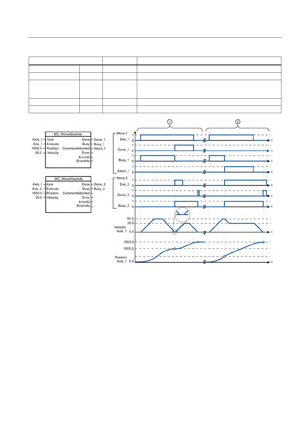 to a standstill briefly (see zoomed-in detail). When the axis reaches the new target position, this is signaled via