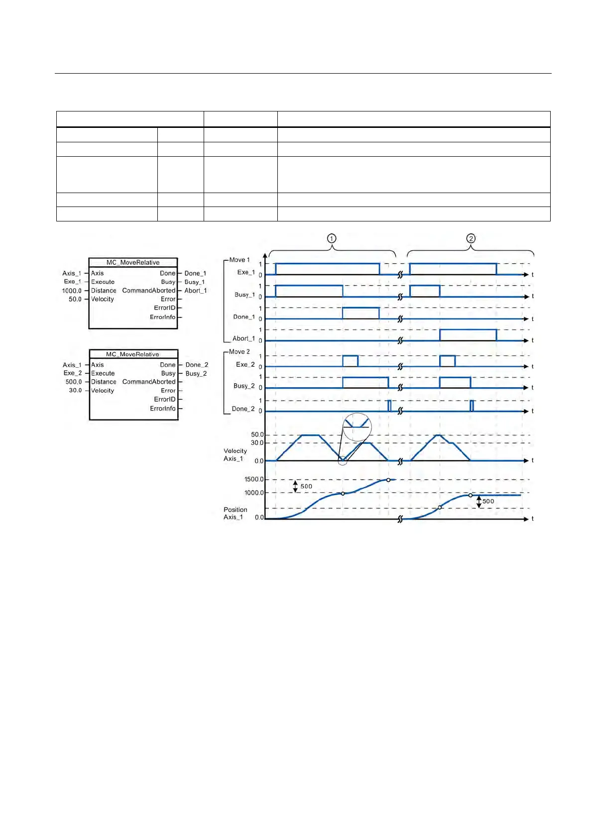 comes to a standstill briefly (see zoomed-in detail). When the axis reaches the new target position, this is signaled