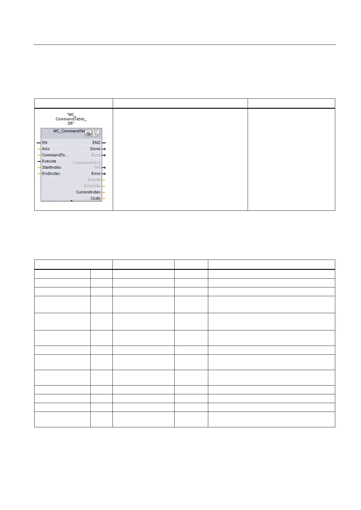 Table 10- 25 Parameters for the MC_CommandTable instruction