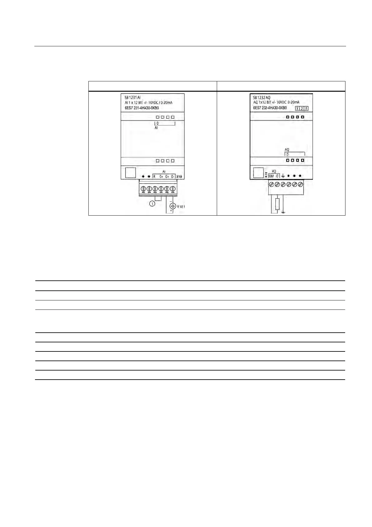 Table A- 30 Wiring diagrams for the analog SBs