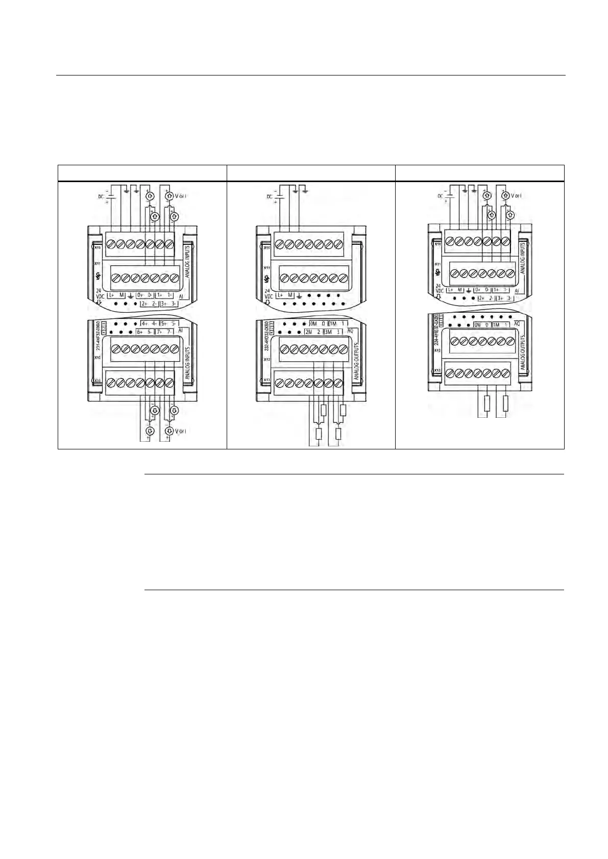 Wiring diagrams for SM 1231 (AI), SM 1232 (AQ), and SM 1234 (AI/AQ)