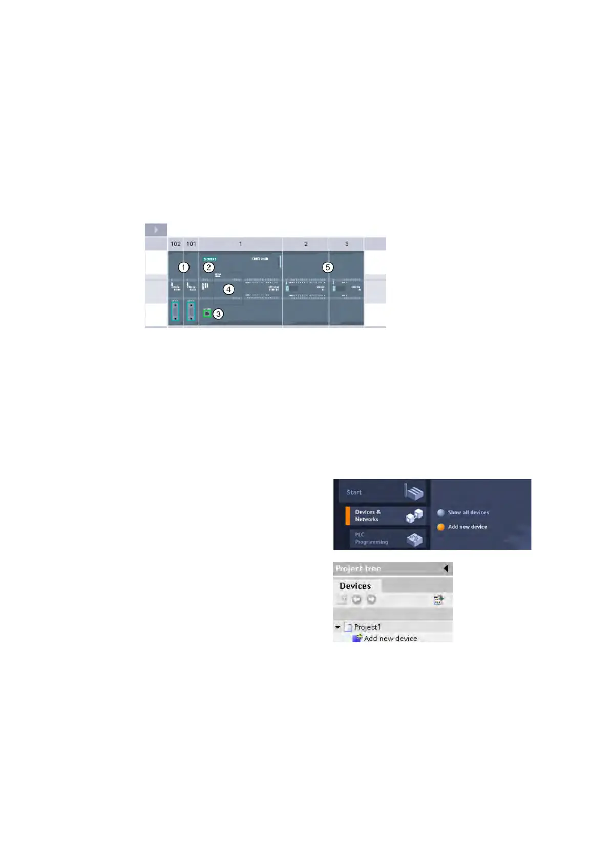 You create the device configuration for your PLC by adding a CPU and additional modules to