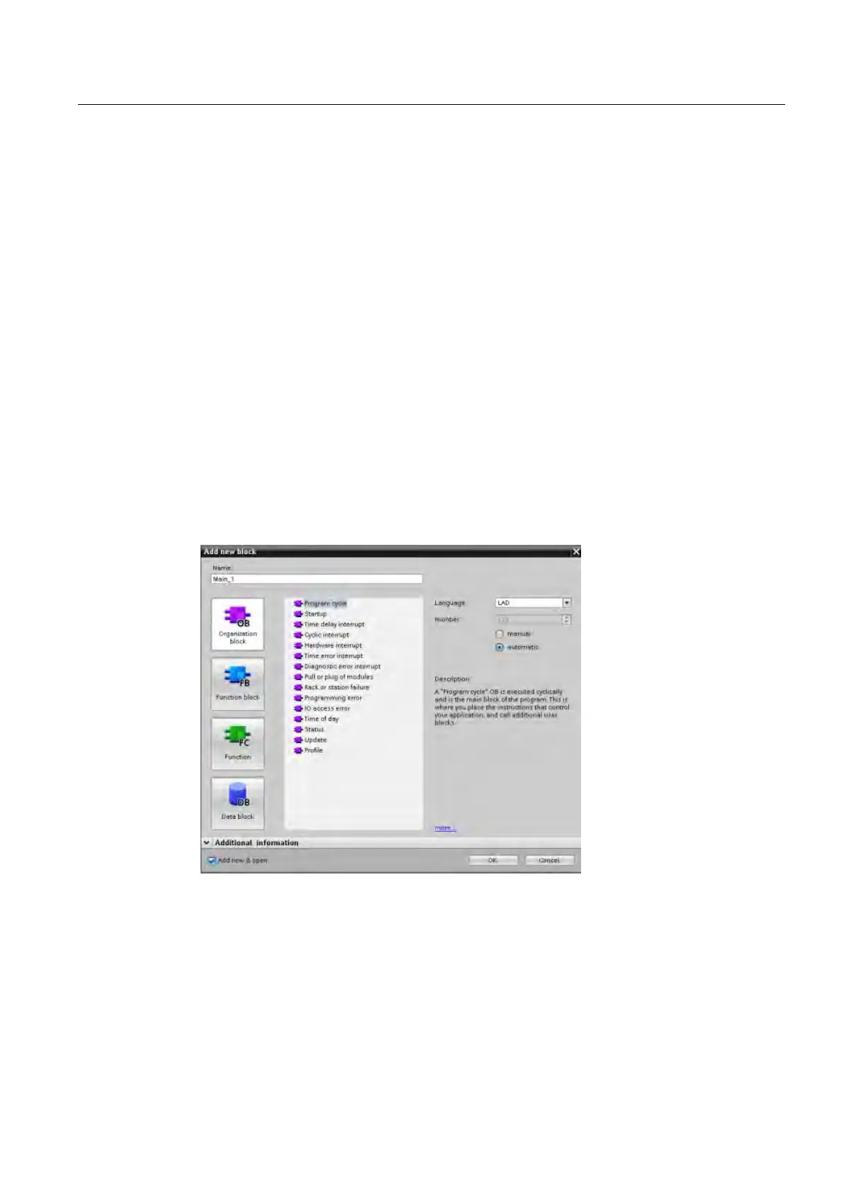 You can create other OBs to perform specific functions, such as for handling interrupts and