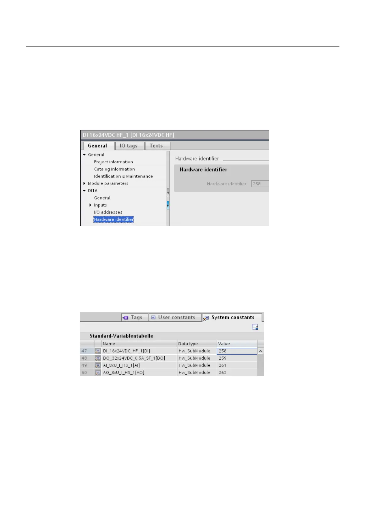 identify the module, is assigned automatically by STEP 7. Such a Hardware identifier is also