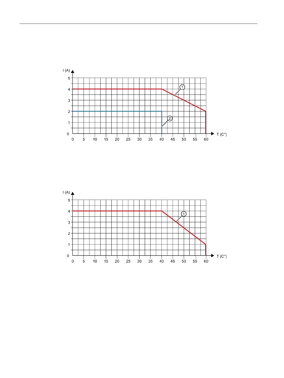 The following figure shows the load rating of the digital outputs in relation to the mounting