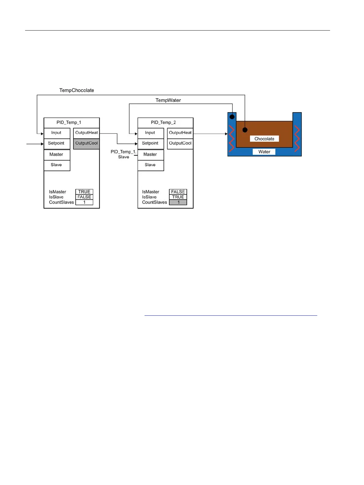 The PID_Temp_1 master compares the process value of the chocolate temperature