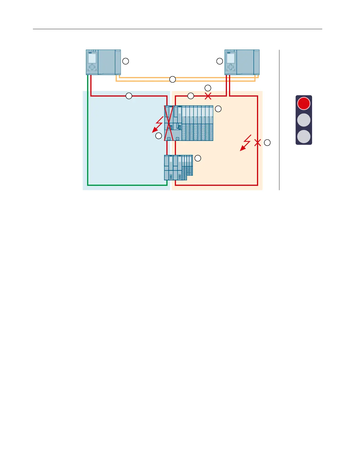 Figure 5-45Failure of an interface module in an R1 device and of the PROFINET lines in two places of a