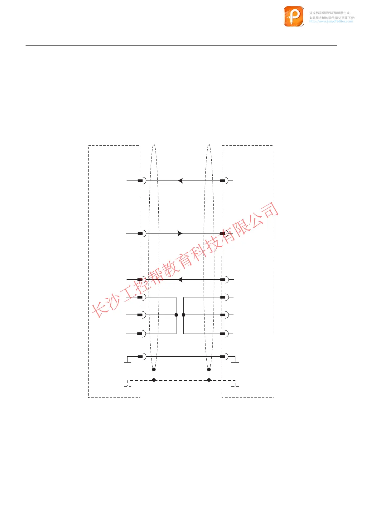 The figure below illustrates the connecting cable for a point-to-point connection between a