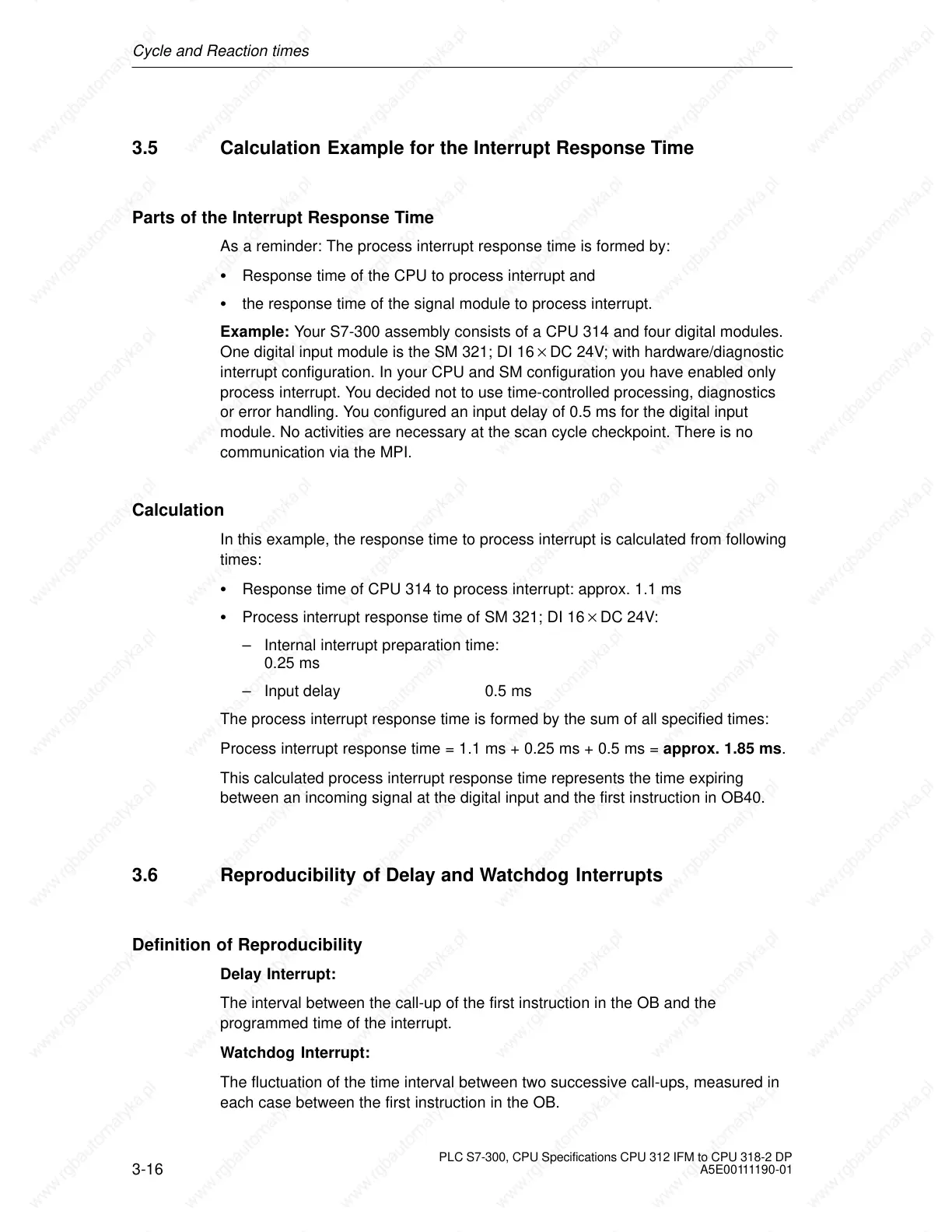 Process interrupt response time of SM 321; DI 16DC 24V: