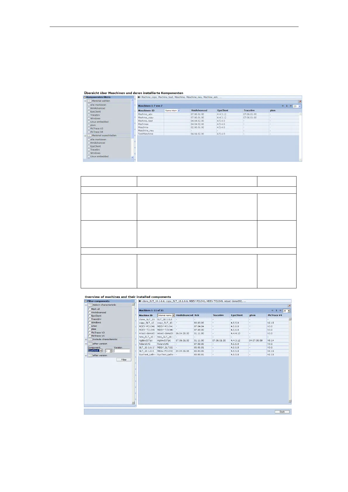 filtering, only machines are displayed that do