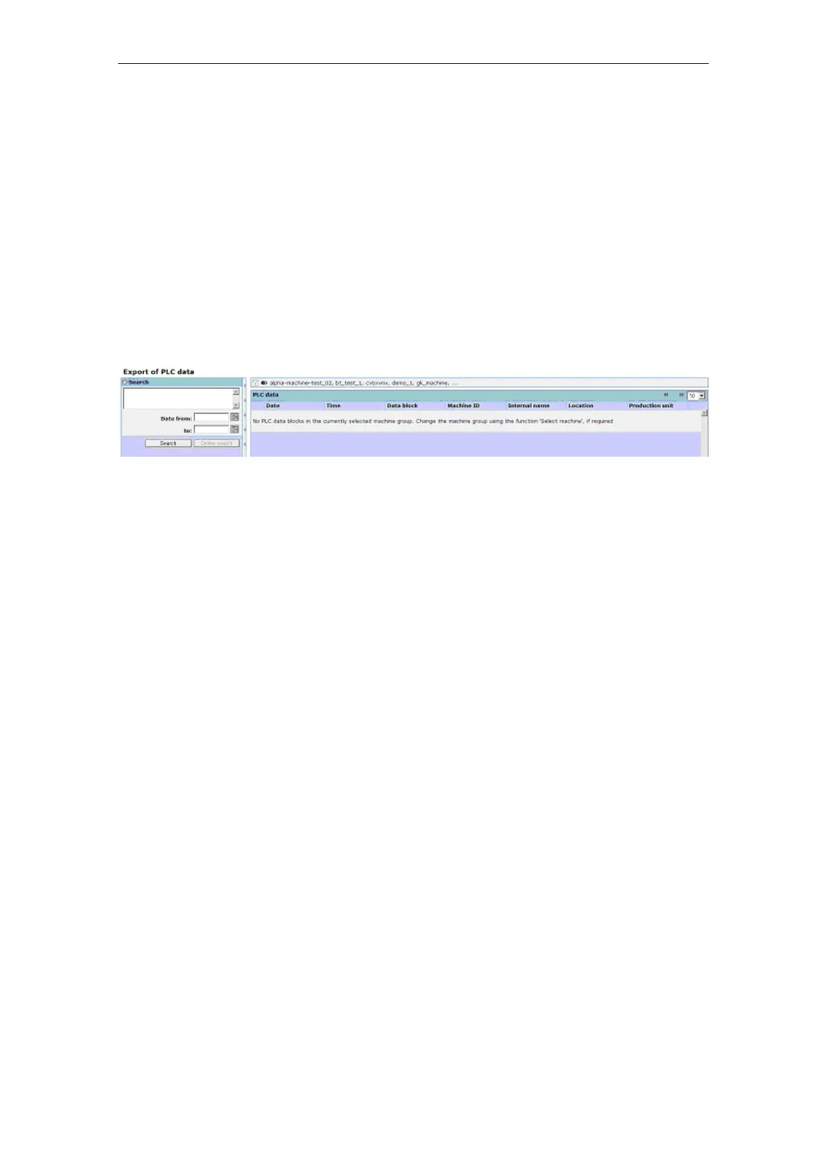 The "Export of PLC data" function can be used to export the uploaded contents of