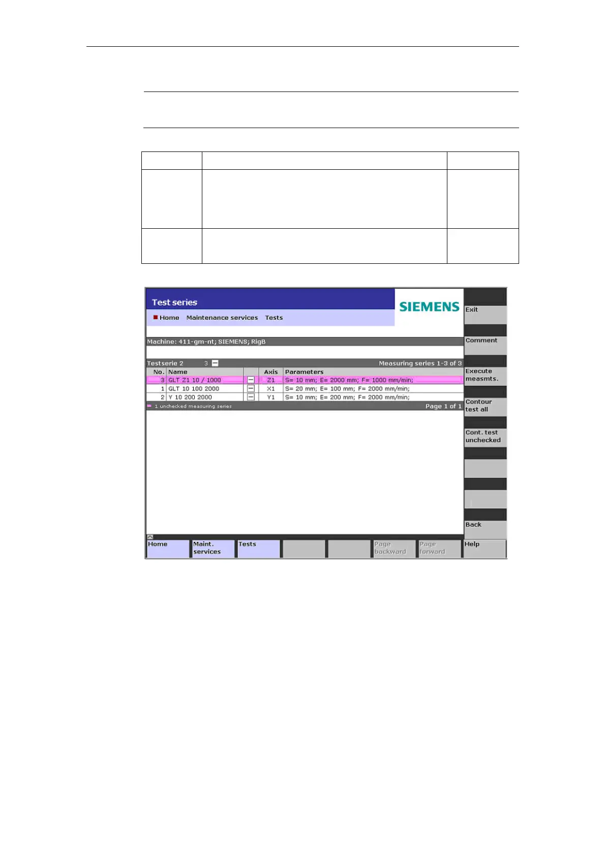 2.3 Test series on the machine