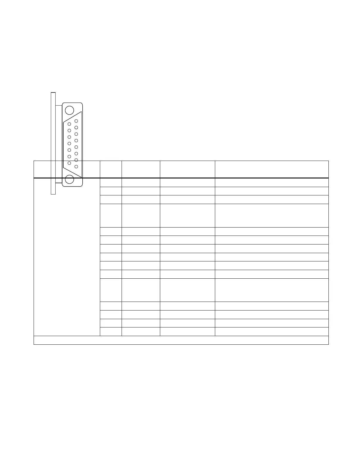 The table below shows the pin assignment for the 15-pin subminiature D female connector in