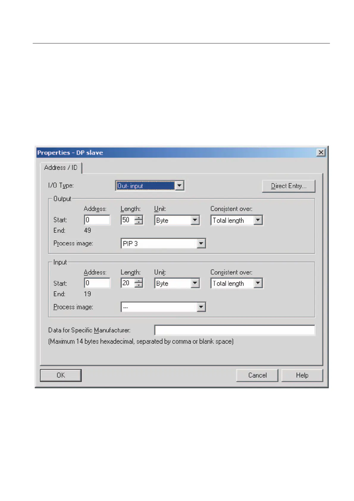 ● Selecting "Process Image Partition -> ---" under input in the pull-down menu means: do