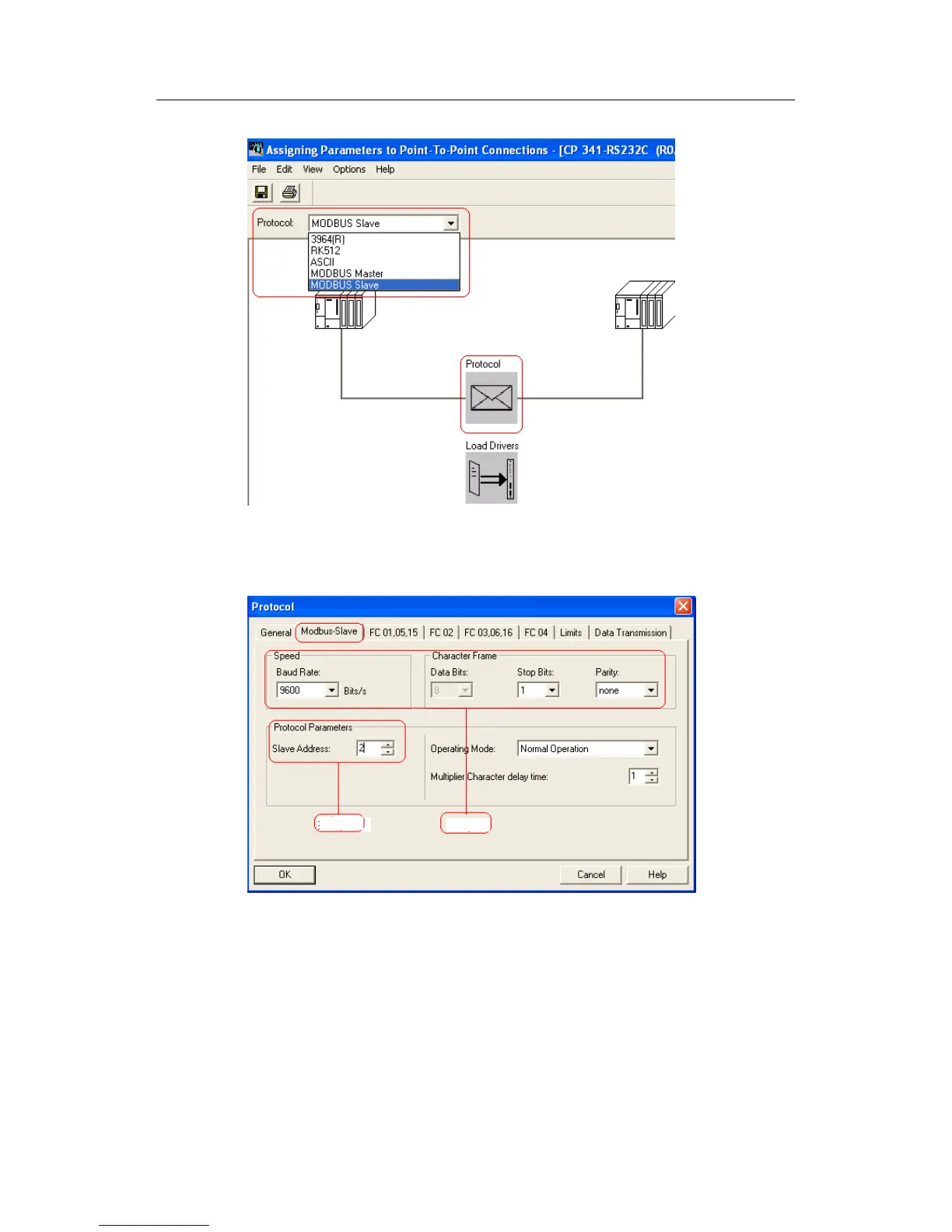 Step 2: set parameters of MODBUS Slave, such as Baud rate, stop bit and check