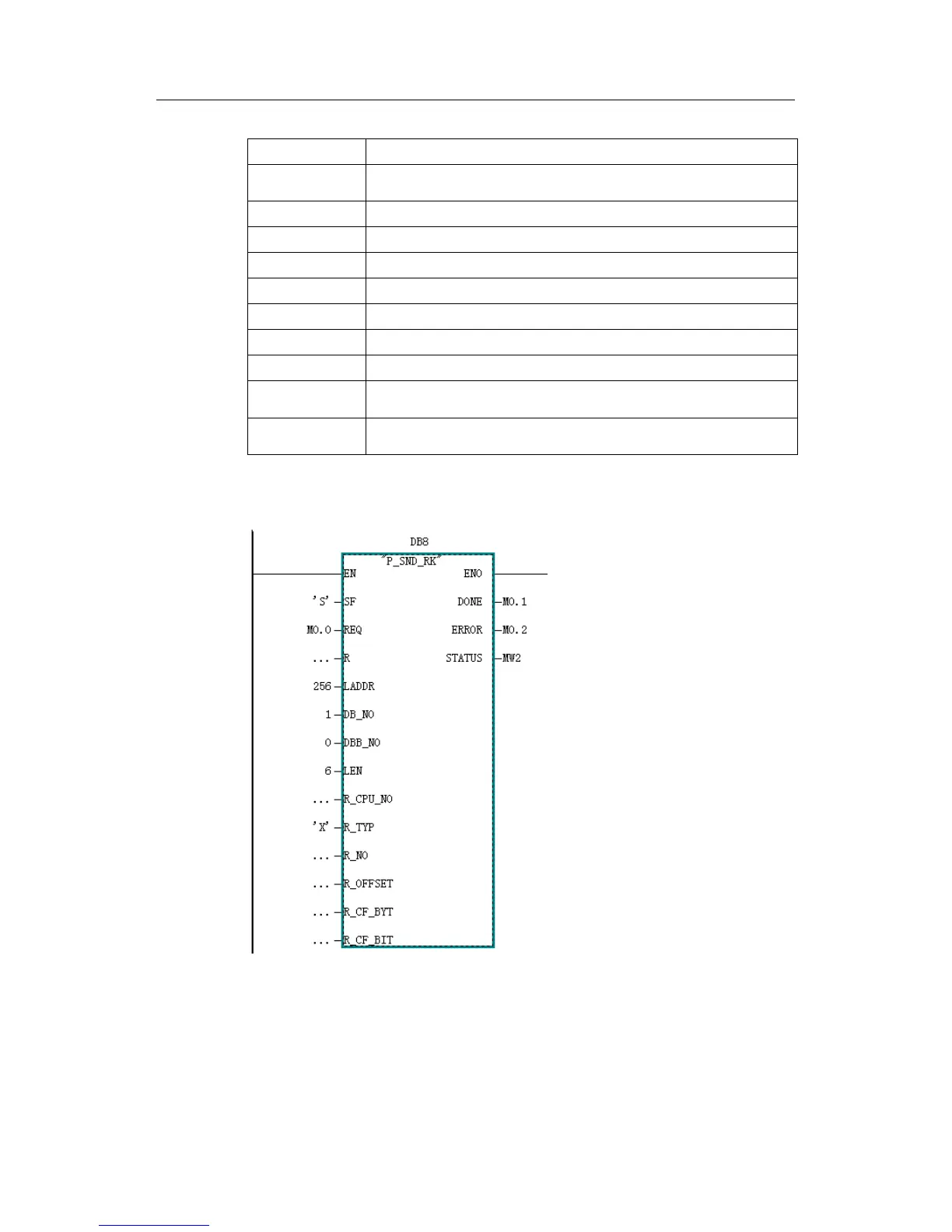 Table 13: Parameter definition of FB8 P_SND_RK
