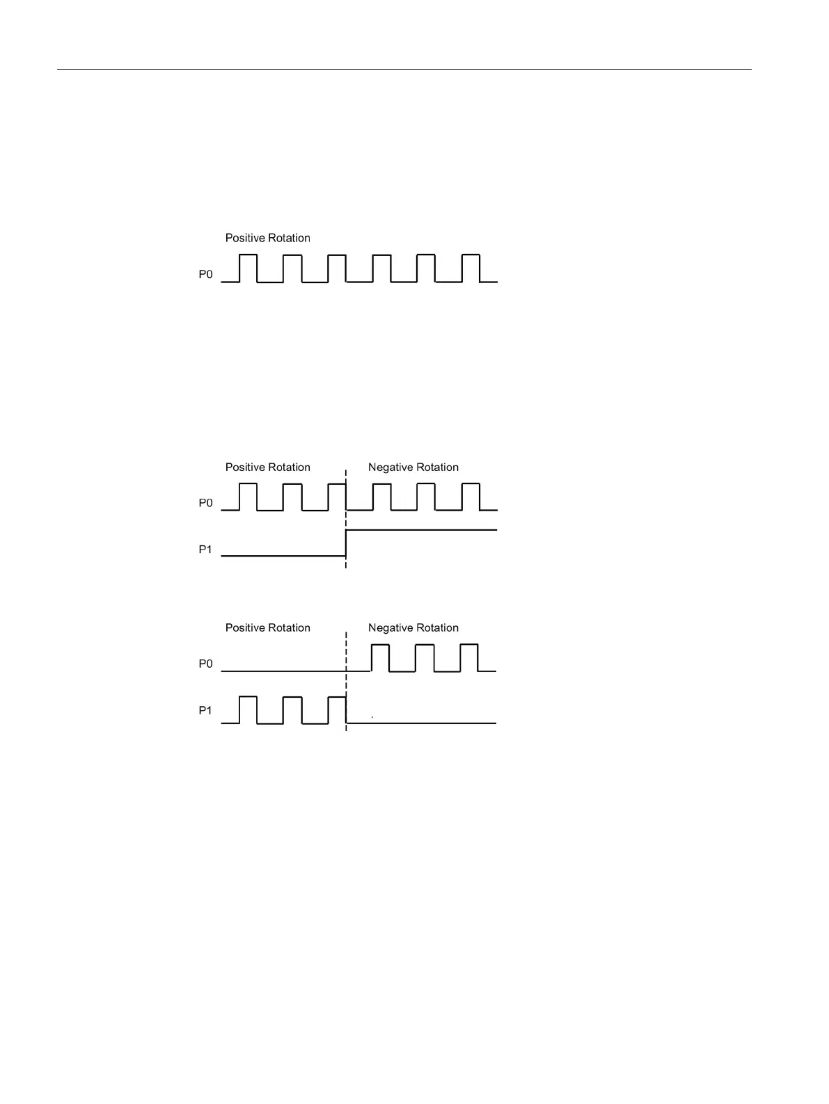 ● Two-phase (2 output): P0 pulses for negative directions. P1 pulses for positive directions.