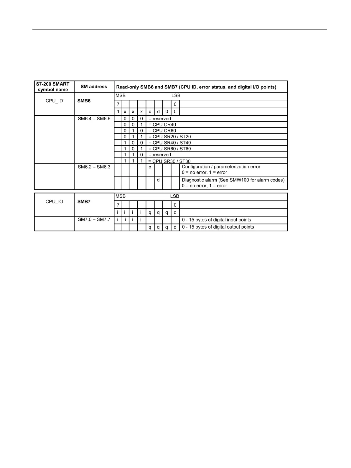 D.8 SMB6-SMB7: CPU ID, error status, and digital I/O points