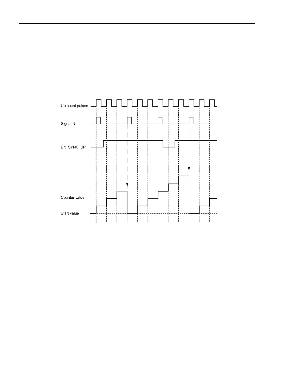 After synchronization is enabled for counting in an upwards direction, the counter is