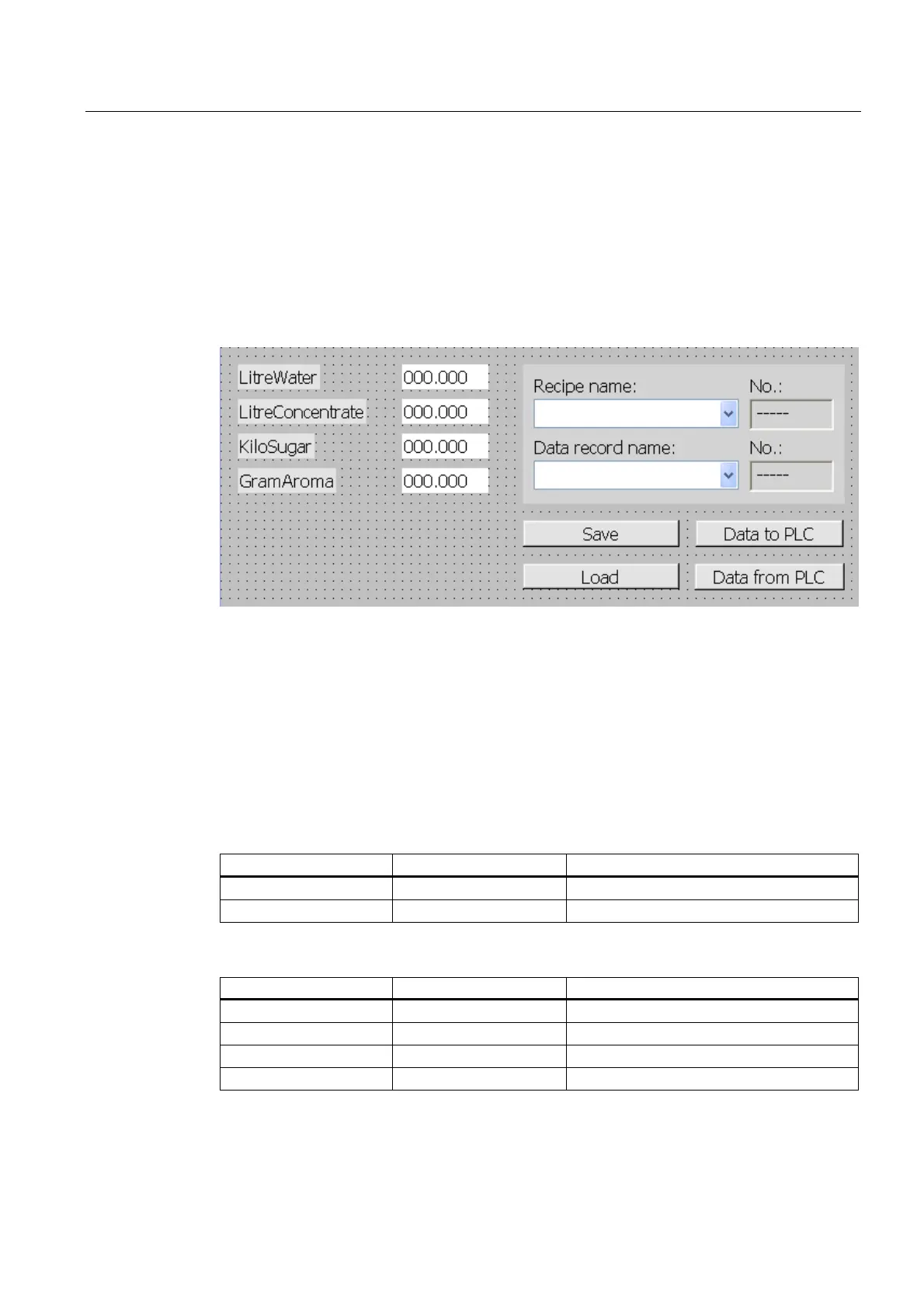 records. You should be able to load and save the values of the recipe data records and