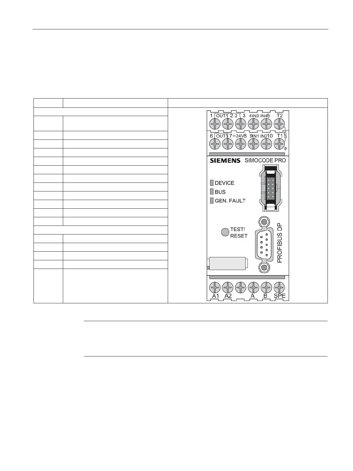 Pin assignment for SIMOCODE pro C / pro V PB basic units