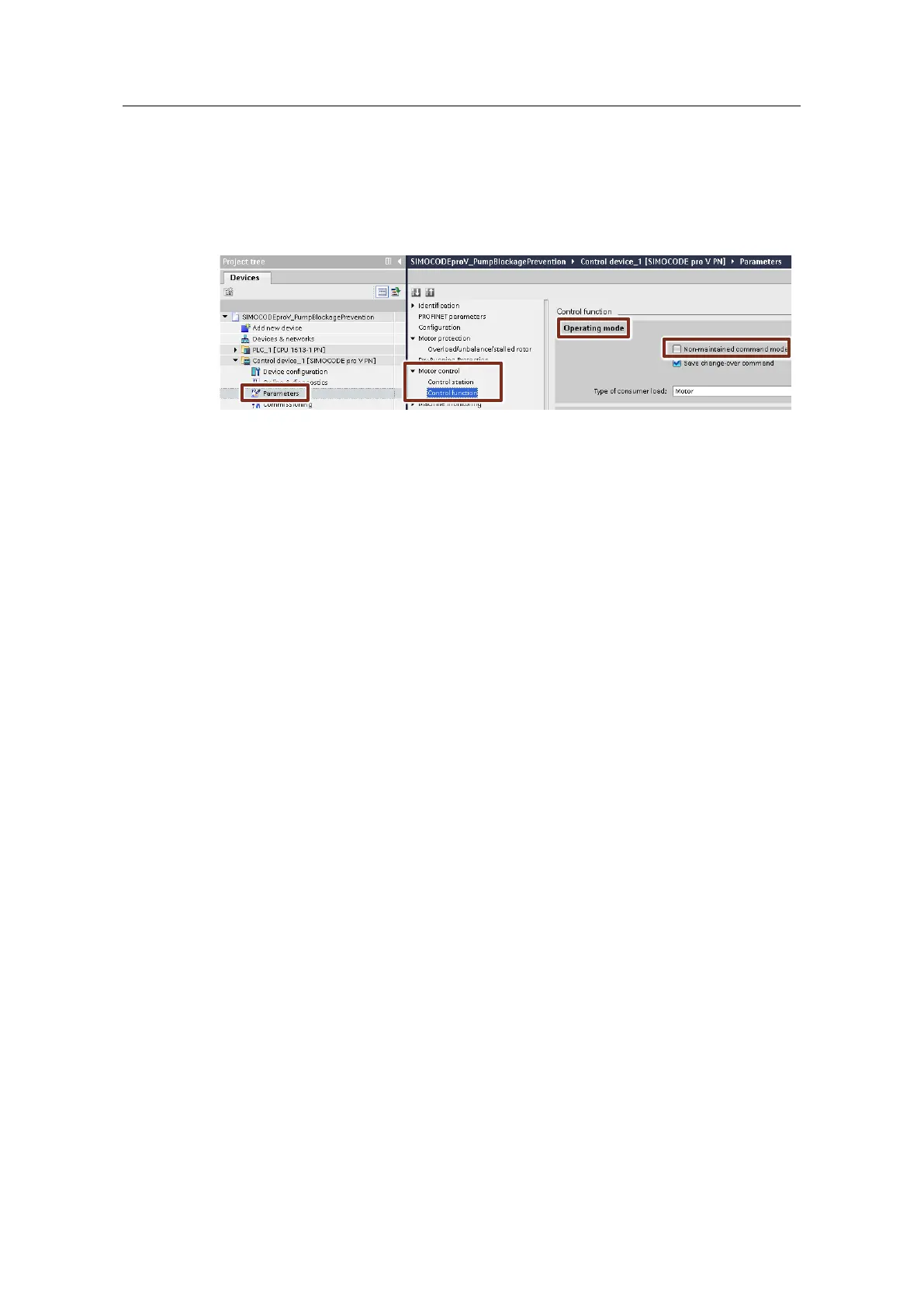 default parameterization "Non-maintained command mode", the control command
