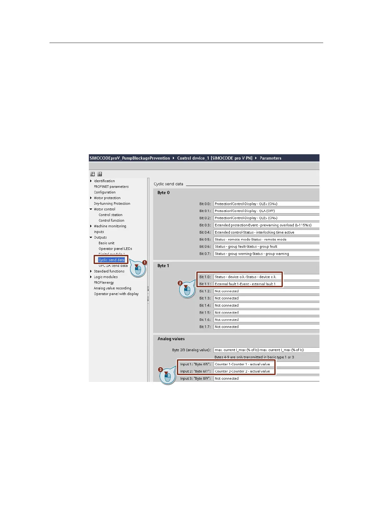 – Bit 0: Signal "Status – device o.k." of the binary connection block "Status –