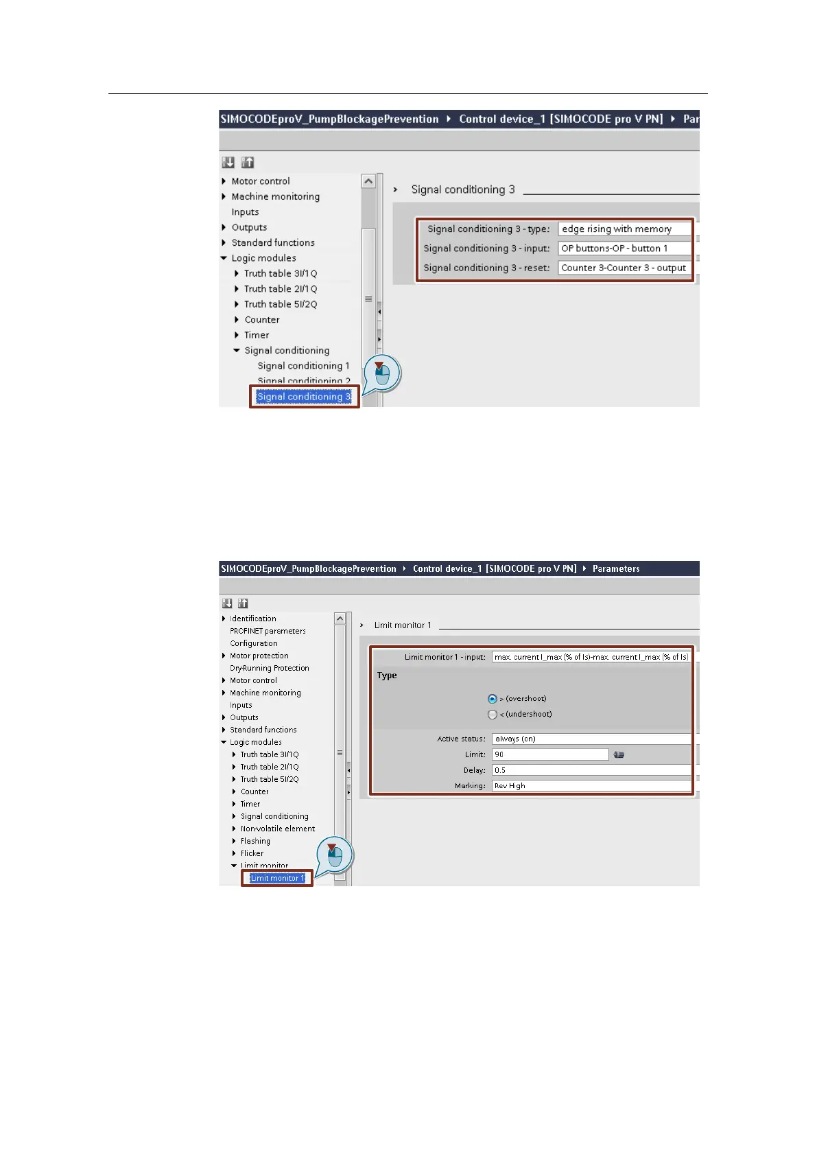 1. Under "Logic modules > Limit monitor > Limit monitor 1", parameterize the