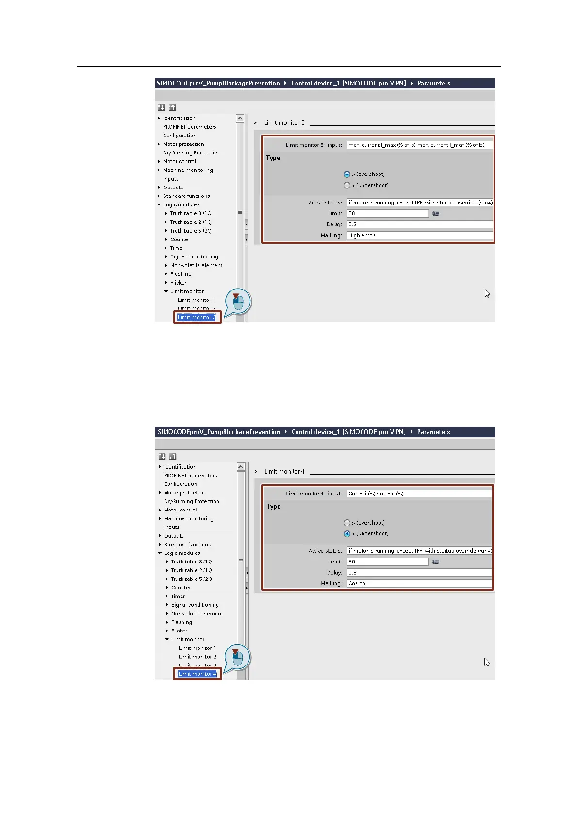 4. Under "Logic modules > Limit monitor > Limit monitor 4", parameterize the limit