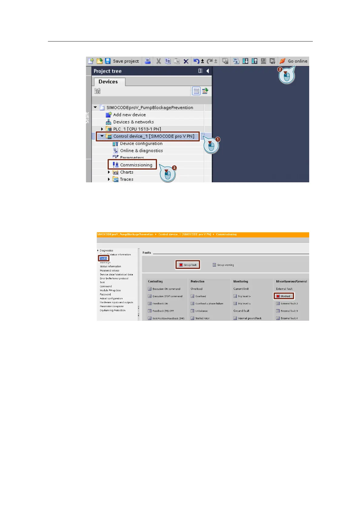 If a blockage can`t be cleared, the parameterized "External fault 1" will be