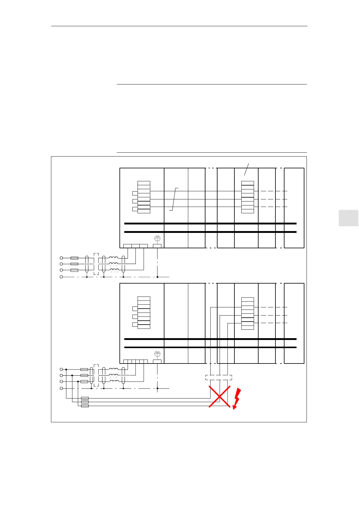Fig. 8-31 Examples of correctly/incorrectly connecting up the unit using a three--conductor connection with a maximum