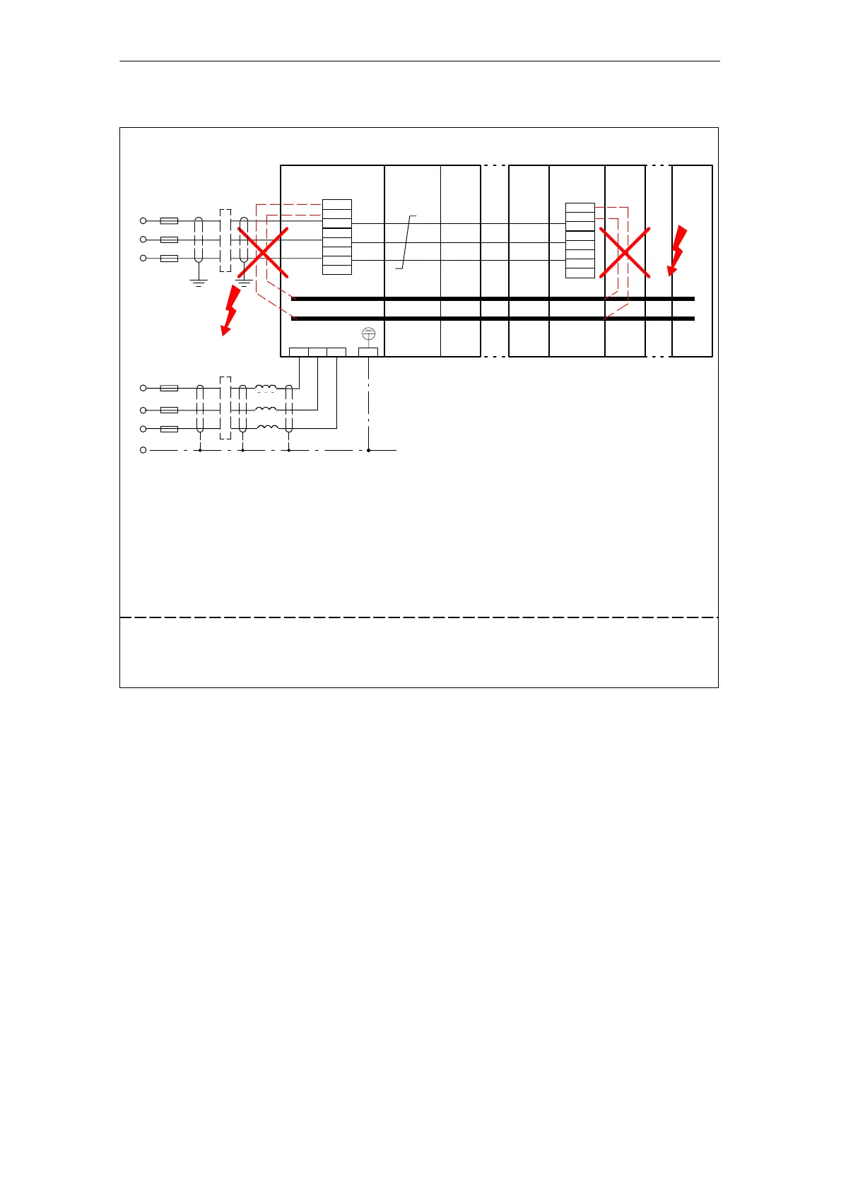 Fig. 8-39 Examples of illegal (forbidden) six–conductor connection to the line supply + DC link connection