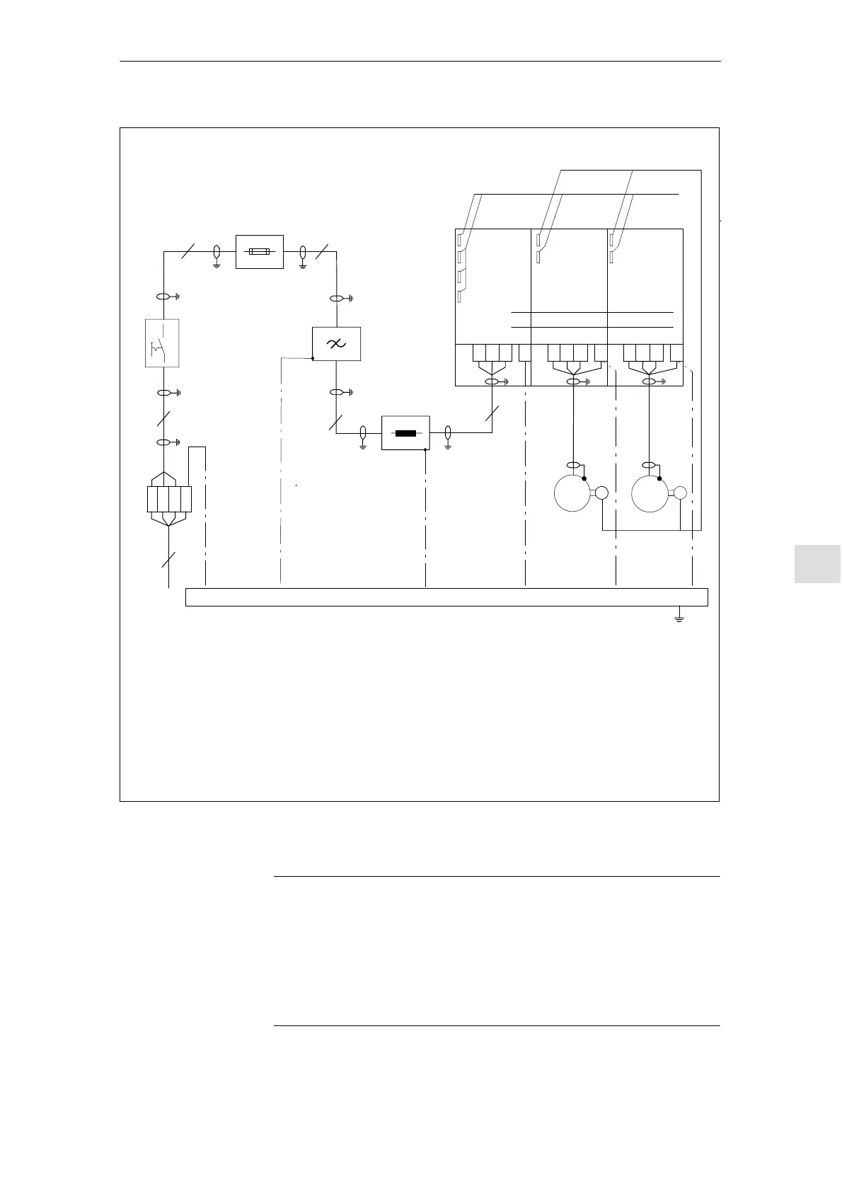 Fig. 9-1 Connecting diagram for line filters for 5 kW and 10 kW U/I modules and for 16 kW to 120 kW I/R modules.