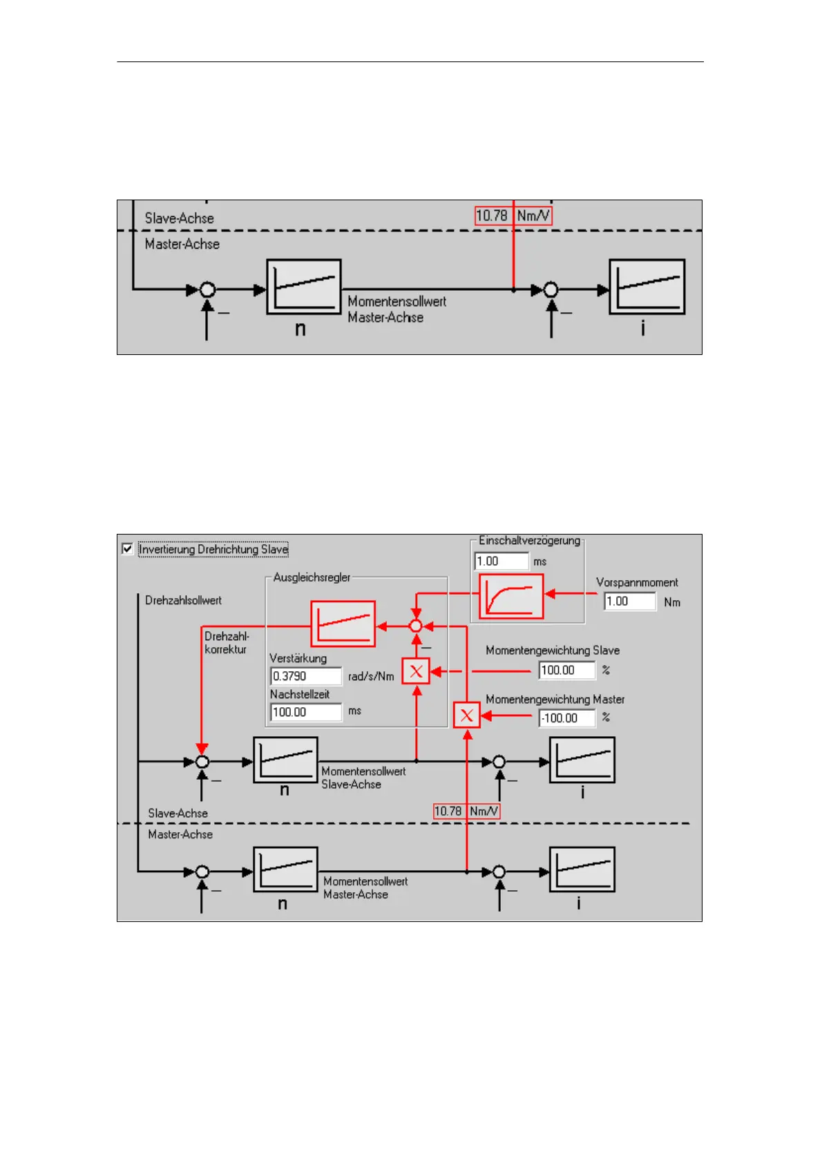 The torque setpoint of the master axis is transferred via the analog