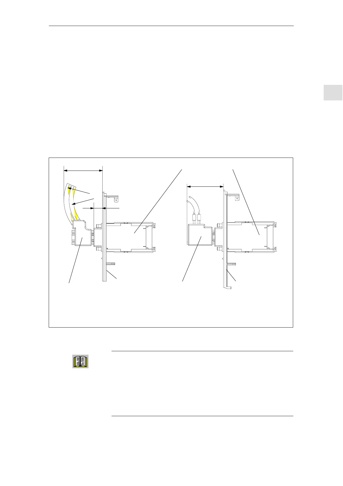 Fig. 2-9 Mounting depth of the bus connector for the optional PROFIBUS–DP module