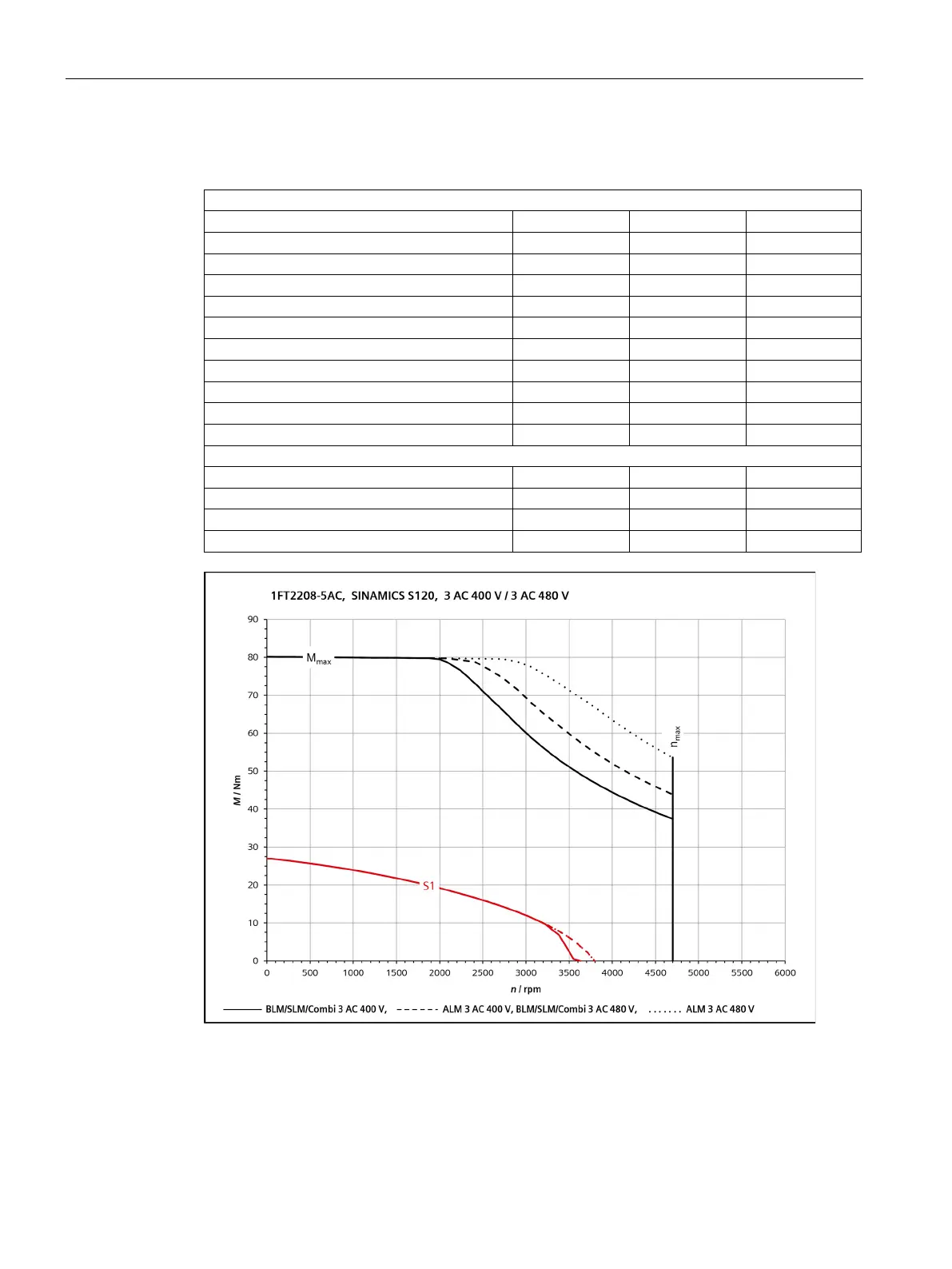 Rated data with S120, 3 AC 400 V / 3 AC 480 V